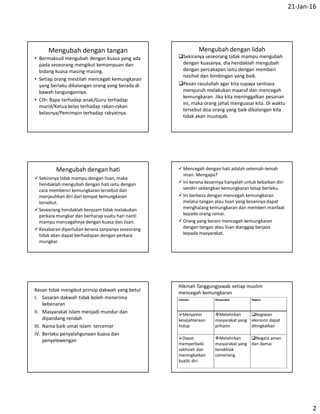 Belajar Ilmu Salaf Dan As Sunnah Rosulullah Shallallahu Alaihi Wa. Dokumen Standard Kurikulum dan Pentaksiran Pendidikan Islam Tingkatan 2. 245 Menjelaskan cara menangani kemungkaran dengan tangan lidah dan hati secara berhikmah.
